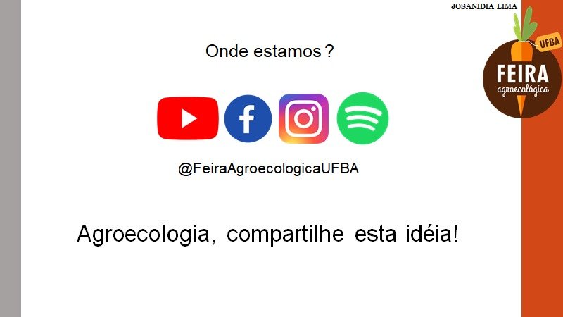 A Feira Agroecológica da UFBA atende a uma demanda da população por alimentação saudável. Embora principal interesse da Agroecologia seja rearranjar e manejar agroecossistemas, ela também estimula mudanças de valores e formas de organização.