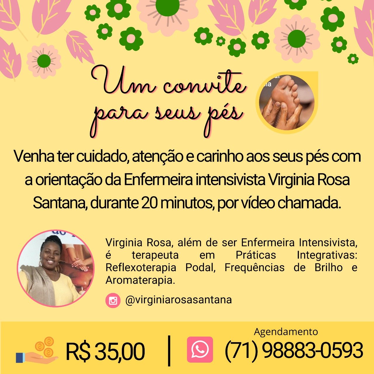 Enfermeira Intensivista e do Trabalho.Terapeuta em Praticas Integrativas e Complementares com Reflexoterapia Podal, Aromaterapia, Massagem Corporal eImposição de Mãos.